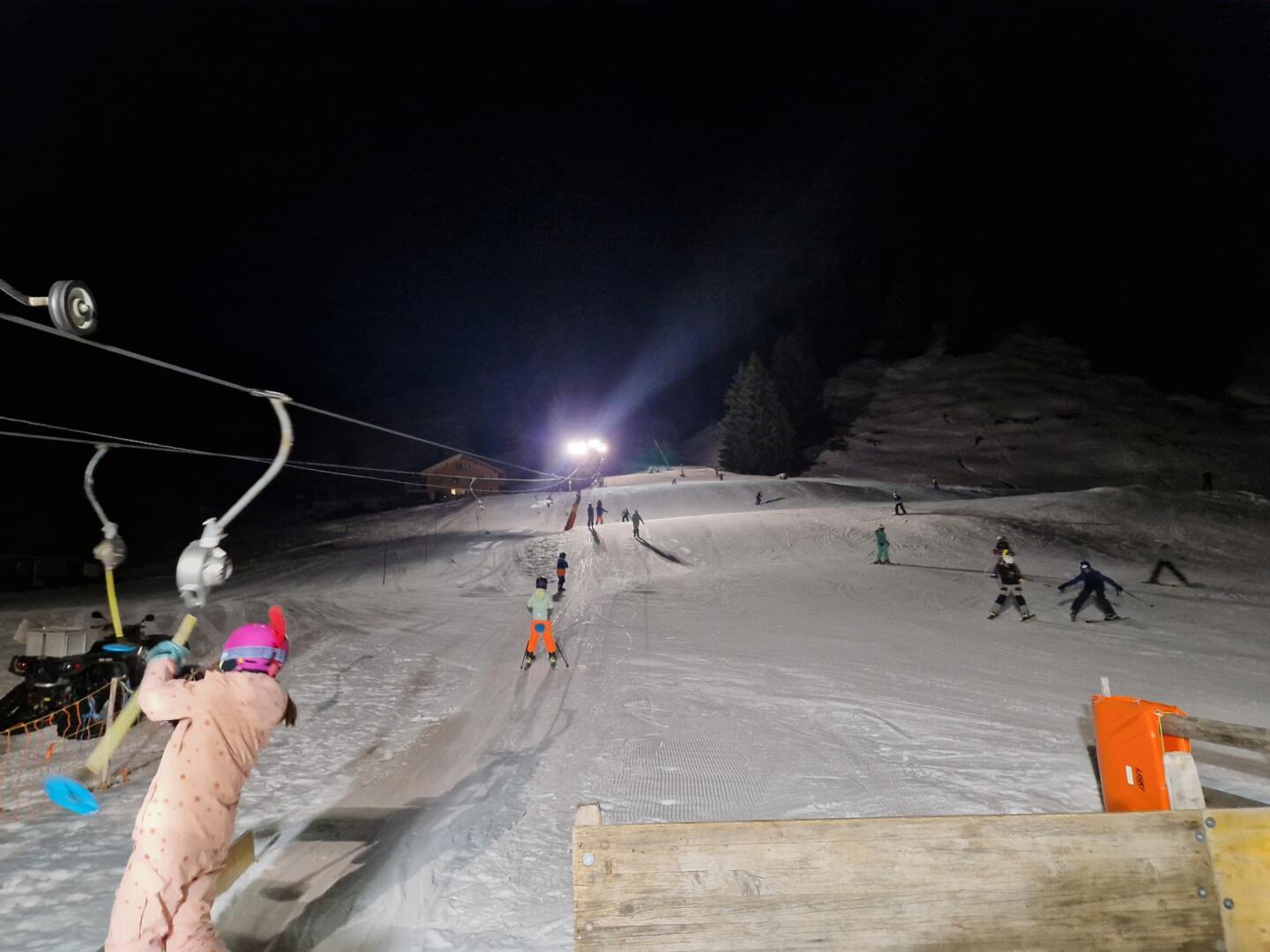 Der Tag begann mit dem Vogel-Lisi Lied. Danach gab es feines Frühstück und dann ab auf die Piste. Die kleinere Gruppe ging an den Hampy-Lift direkt gegenüber vom Lagerhaus. Die grössere Gruppe ging ans Chuenisbärgli. Nach dem Skifahren gingen alle für das Mittagessen zurück ins Lagerhaus. Es gab Hotdogs. Danach gingen wir entweder Schlittschuh fahren oder Klettern oder in den Escaperoom. Zum Glück konnten wir danach mit dem Bus ins Lagerhaus zurückfahren. Danach hatten wir Zvieri, es war sehr lecker. Anschliessend mussten wir alle in die Dusche. Zum Abendessen gabs Gehacktes mit Hörnli. Beim Nachtessen war das Reden strengstens verboten! Wir durften nur auf das Tischtuch schreiben, um uns mitzuteilen. Lustig hatten wir es trotzdem. Es wurde gekichert und gelacht und einige Kinder vergassen fast ihr Abendessen. Die Kinder, die wollten und noch Energie hatten, durften noch Nacht-Skifahren gehen. Die anderen Kinder machten es sich im Zimmer gemütlich. Zum Abschluss des Tages kriegten wir noch ein feines Dessert. Zu guter Letzt gab es noch ein Tagesrückblick mit den besten Bildern und Videos des Tages. Dann gingen wir schlafen und alle mussten ihre Handys abgeben.