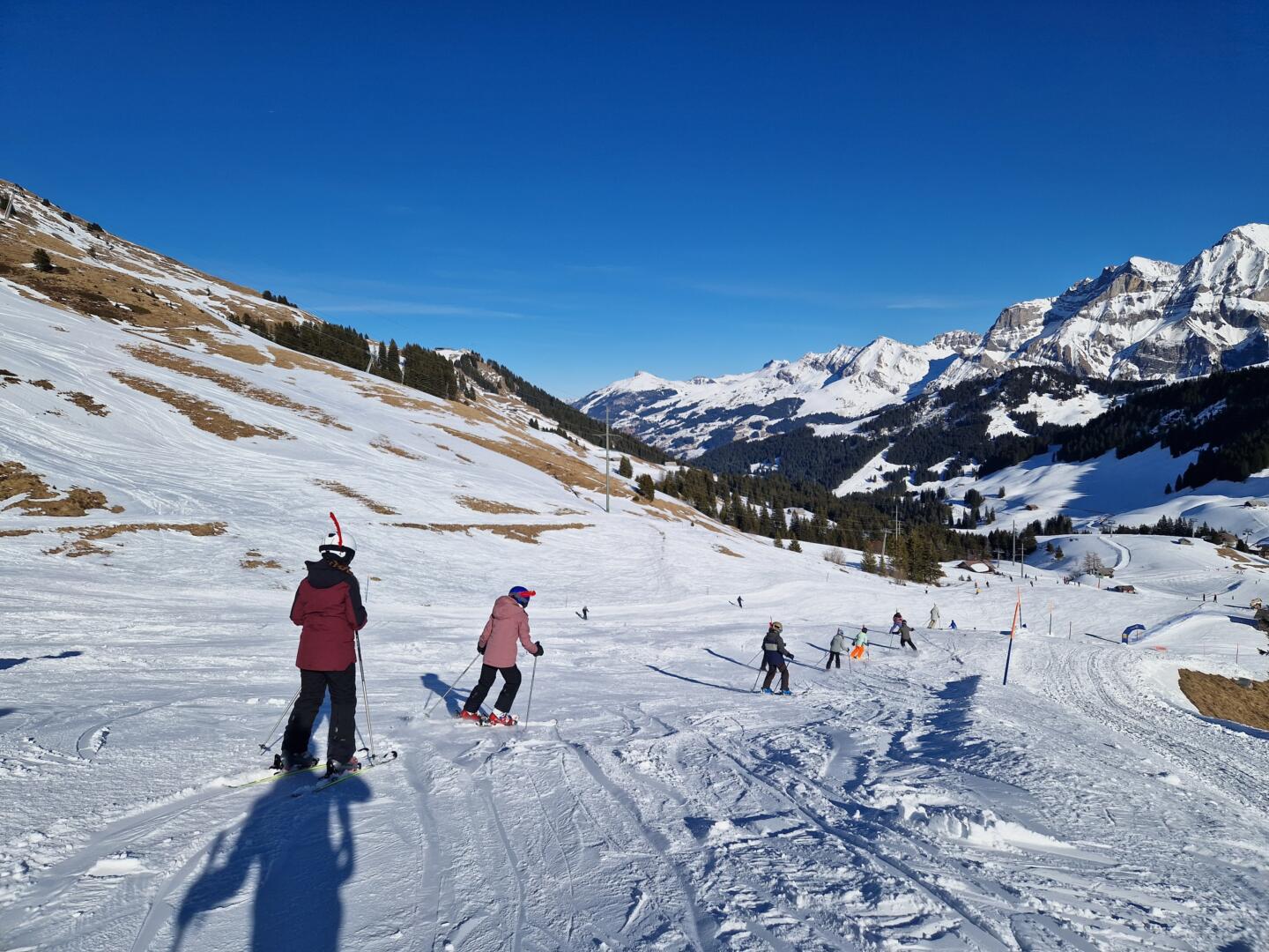 In den Tag starteten wir mit Geburtstagsmusik, weil Noelia Geburtstag hatte. Nach einem leckeren Frühstück machten wir uns bereit für die Piste. Dort verbrachten wir einen anstrengenden, aber auch grossartigen Morgen mit traumhaft schönem Wetter. Nach einem feinen Zmittag im Hahnenmoos, ging es wieder ab auf die Piste.