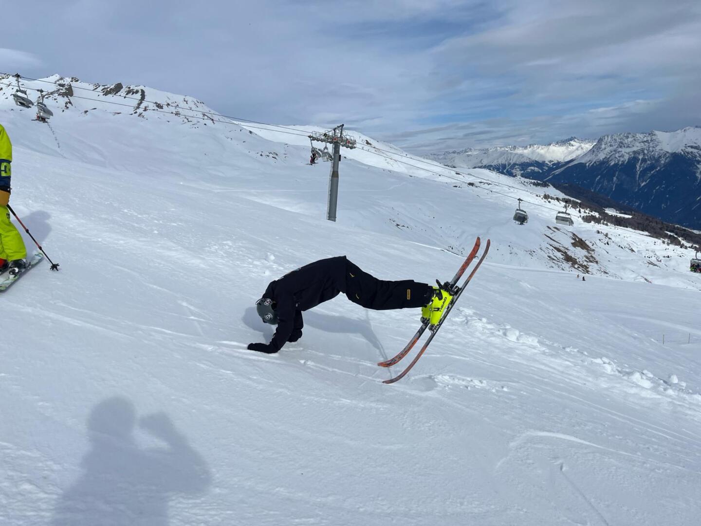 Als der Skitag/Snowboardtag heute begann trennten sich unsere Gruppen, nach einem coolen Warm Up, in einen neuen wunderschönen Skitag. Der Himmel war etwas bewölkt, doch wir durften die Berge trotzdem in ihrer strahlender Schönheit bewundern. Die Gruppe von Herrn Iten und Herrn Latka fuhren die wundervolle Traumpiste und genossen die Stille der Berge.